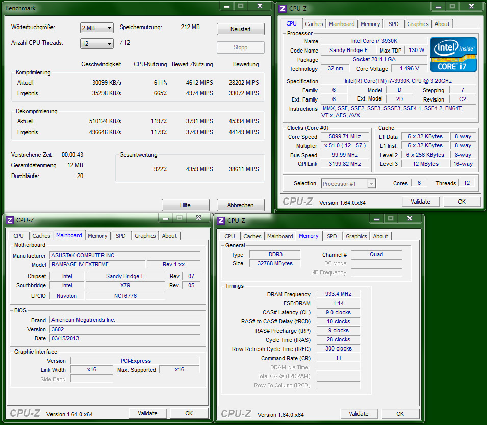 Diskutiere und helfe bei 7-Zip // Ergebnisse im Bereich Benchmarks im SysProfile Forum bei einer Lösung; Falkenhorst | 13312 | 343% | 3916 | Intel Core i5 2500K @ 3.3GHz | 8GB Corsair XMS3 9-9-9-24 @ 665.3MHz | Bild Eingetragen Dieses Thema im Forum "Benchmarks" wurde erstellt von darkviruz, 12. Februar 2009.